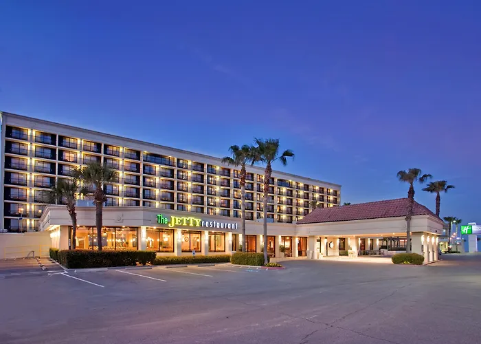 Directly situated on the beach, this Holiday Inn Resort offers rooms with private balconies and refrigerators. It is conveniently located within a short distance from attractions such as Schlitterbahn Waterpark and Pleasure Pier. Guests can enjoy a variety of dining options available onsite, including an American cuisine restaurant and a vibrant nightclub with live music. The hotel features various recreational facilities, a fitness center, and a sports court. Special amenities include a free shuttle service to nearby attractions, enriching the overall guest experience.